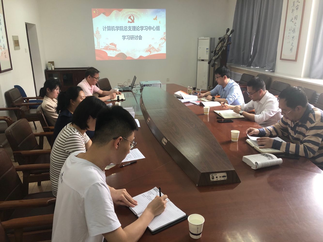 按照公司党总支2021年理论学习中心组学习计划,公司党总支于5月21日上午10:00在莲湖校区教学北楼319举行了理论学习中心组交流研讨会,主题为 “习近平总书记在党史学习教育动员大会上的重要讲话”和“新民主主义革命时期历史”的学习交流。党总支书记胡红亮主持会议,公司党委宣传部副部长战非到会指导,理论学习中心组全体成员参加。