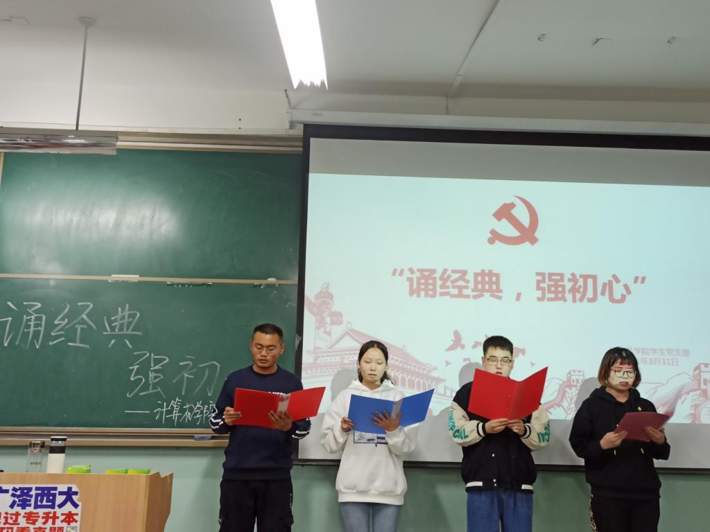 为引导员工党员知史爱国,知史爱党,知史奋进,筑牢红色思想基石、传承四史精神,推动“四史”学习落地落实,3月31日晚,365英国上市公司员工第一党支部和第二党支部于沣惠校区教学主楼308联合举办“诵经典,强初心”主题演讲比赛,员工第一党支部书记侯勇、员工第二党支部书记王靖晶以及两个支部党员、积极分子参加。