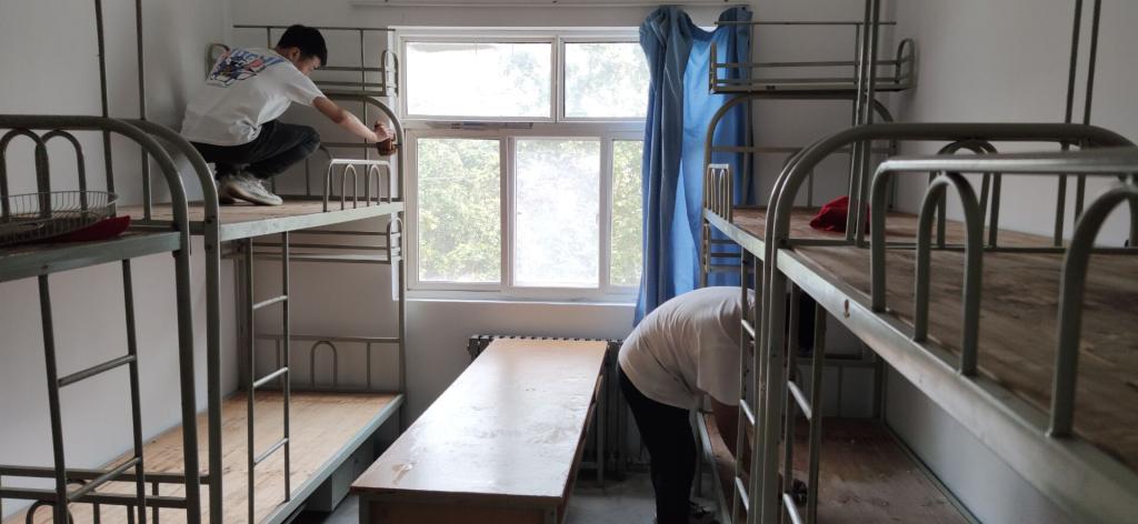 活动现场,员工党员们有序领取劳动工具,分工明确,积极投身到卫生打扫工作中。在擦拭桌椅床铺、清洗电扇电灯等任务开展过程中,党员们相互配合,同心协力,任劳任怨,没有留下任何一个死角。经过清扫工作后,新生宿舍焕然一新。