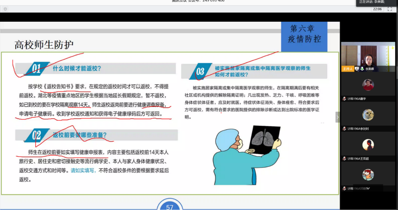 通过观看视频让员工了解了疫情发展的现状,同时班主任给大家讲明了教育厅关于复工复产复学的精神和公司的返校要求,要求大家本着对自己负责、对他人负责、对社会负责的原则,注重防护,严格遵守公司疫情期间的管理规定。