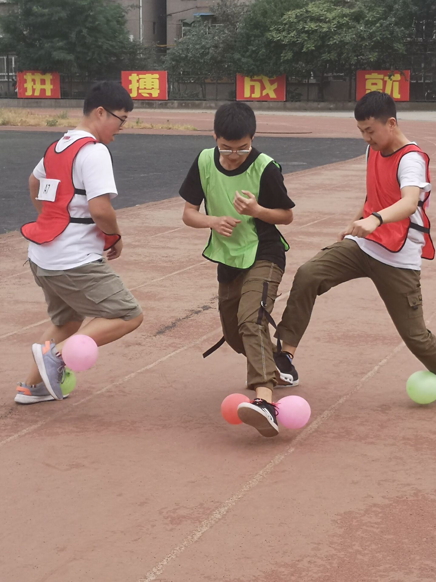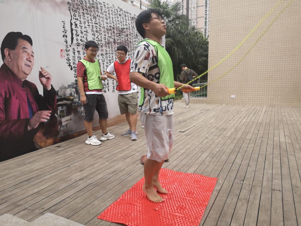 公司共28名同学参加活动,大家分成四组进行对抗赛。比赛设置了两个环节,第一个环节包括指压板跳绳、整蛊吃糖、过五关斩六将、你画我猜、听歌识曲等形式多样的小游戏,获胜的同学可以在第二个环节得到特权。在第二个环节中,参赛者在操场进行撕名牌小组对抗赛,同学们积极参与其中,为自己所在的团队拼尽全力。