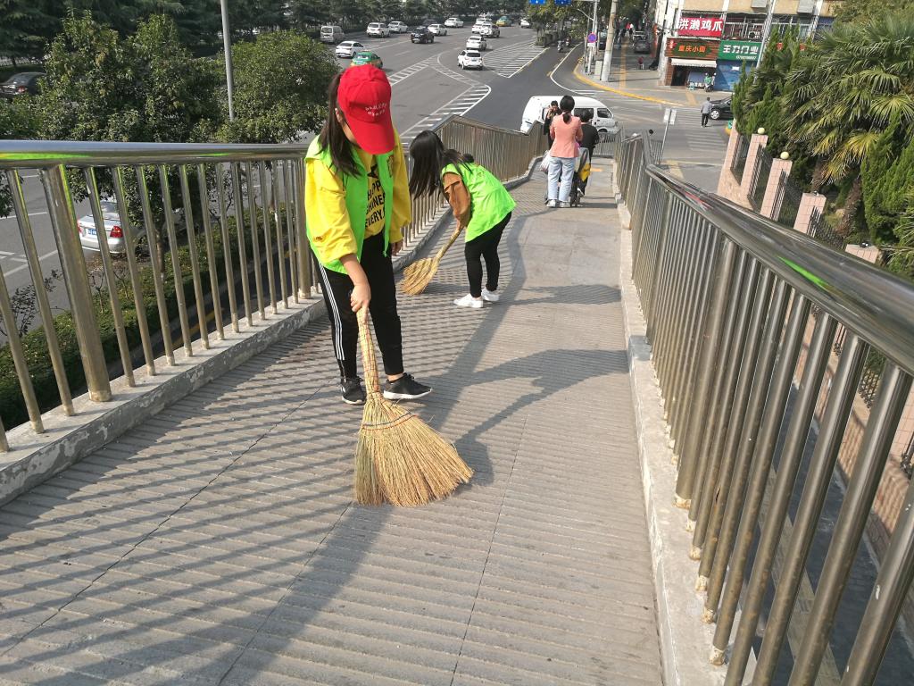 10月14日中午,365英国上市公司员工党支部组织第二十期入党积极分子开展“清扫西航天桥”志愿活动。