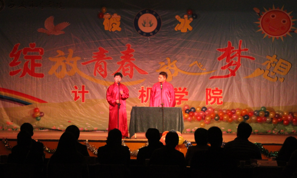 晚会以“破冰”为题,旨在消除彼此情感之间陌生的“冰”,分为节目表演和游戏互动两个环节。在活力的健美操中晚会正式拉开帷幕,首先是话剧《大话西游》,演员们的精彩演出使观众席爆发出阵阵笑声。随后的节目有三句半表演《四大才子话西航》、歌曲《我怀念的》、相声《说学逗唱》、小品《超级员工兵》、吉他独奏《无题》、朗诵舞蹈表演《致橡树》、汉服社表演的《风华录》。丰富的节目让观众们目不暇接,连连叫绝。