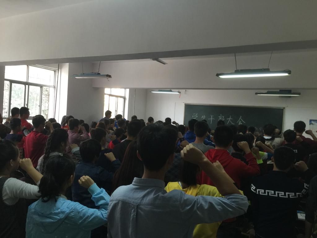 刘书记对老一届干部的努力工作表示感谢,对新成员的加入表示欢迎,希望同学们能做一名合格的员工干部,拥有良好的道德素质、能力素质和身心素质,处理好学习和工作的关系,处理好得与失的关系,借助员工会的平台更好地锻炼自己。在各部门部长做完工作汇报后,团总支副书记尹吴越同学带领大家集体宣誓,在高昂的热情中结束了本次大会。