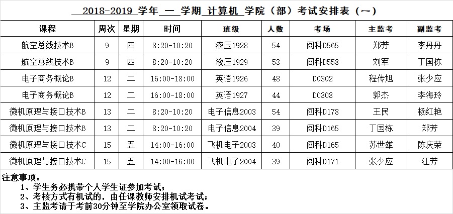 2018-2019-1学期课程考试安排表(一)