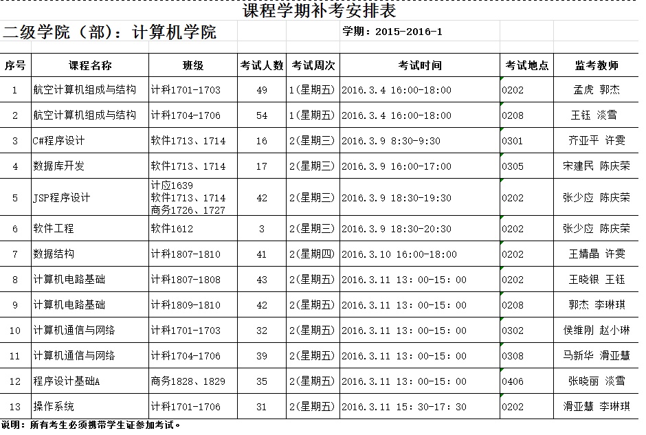 ​365英国上市公司2015-2016-1学期考试课程补考安排