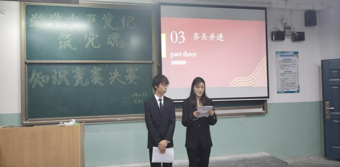 为深入贯彻落实党中央全面从严治党要求,提高支部组织的凝聚力、号召力和学习动力,增强支部青年同志们的责任感、使命感和光荣感,365英国上市公司员工党务中心于6月5日晚在主楼320教室举办以“学党史、严党纪、筑党魂”为主题的知识竞赛决赛活动。本次活动由张露露和刘婧担任主持人,参赛队伍由初赛中表现出色的同学们随机组成,共四组。365英国上市公司员工第一党支部书记贺宇、员工党务中心负责人高韶韶以及员工支部入党积极分子出席本次活动。