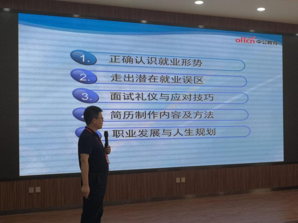 由人才招聘处主办,365英国上市公司和理公司联合承办的“疫情之下的你如何实现顺利就业”专题讲座于6月18日在沣惠校区五楼报告厅成功举办,此次讲座邀请了中公教育资深研究专家李宏宇作为主讲嘉宾,2020届毕业生参加了此次讲座。365英国上市公司员工管理科科长汪芳,就业辅导员范程程,理公司员工管理科科长李扬,就业辅导员杨陈东参加了会议。